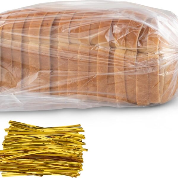 Bread Bags with Ties, Reusable,100 Clear Bags and 100 Ties, Bread Bags For Homemade Bread And Bakery Loaf Adjustable Reusable(100)