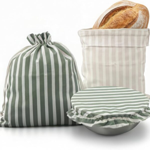 KIBAGA Beautiful Linen Bread Bag Set and Proofing Cover For Homemade Sourdough Bread – Keeps Your Loaf Fresh for Days – Reusable and Easy to Clean Storage Bag, The Perfect Baking Accessories