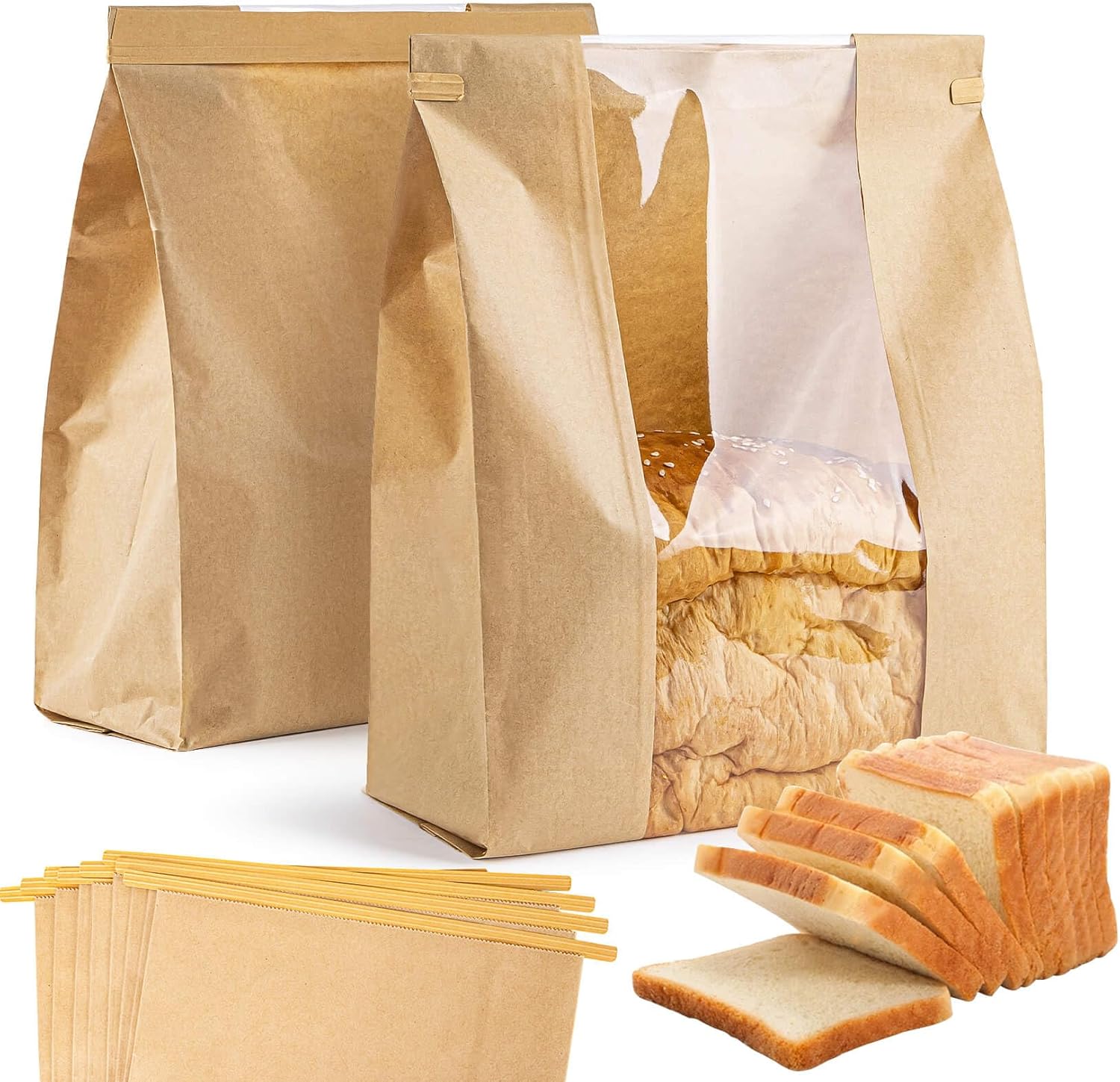 MAQIHAN 24 Bread Bags with Reusable Ties – Homemade Sourdough Bread Storage Bags Brown Paper Bagel Loaf Bakery Bags with Window Toast Bags with Resealable Ties Disposable Baked Goods Sale Packaging