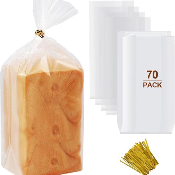 vivinin 70 Pack Bread Bags & 100 Pack Ties, 8″ x 4″ x 18″ Clear Bread Bags for Homemade Bread, Reusable Plastic Bread Storage Bags for Bakers, Bakery Owners