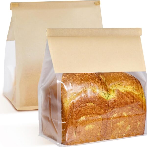 Ocmoiy 50Pcs Large Paper Bread Bags, Resealable Sourdough Bread Bags, Clear Front Tin Tie Tab Lock Bakery Storage Bag with Window Paper Treat Bag (8.7×4.3×11 Inch)