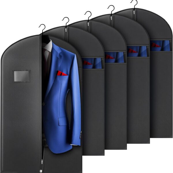 5 Pack 40-inch Suit Bag Garment Bag for Travel and Storage, Garment Bags for Hanging Clothes with Zipper and Visible Transparent Window, Black