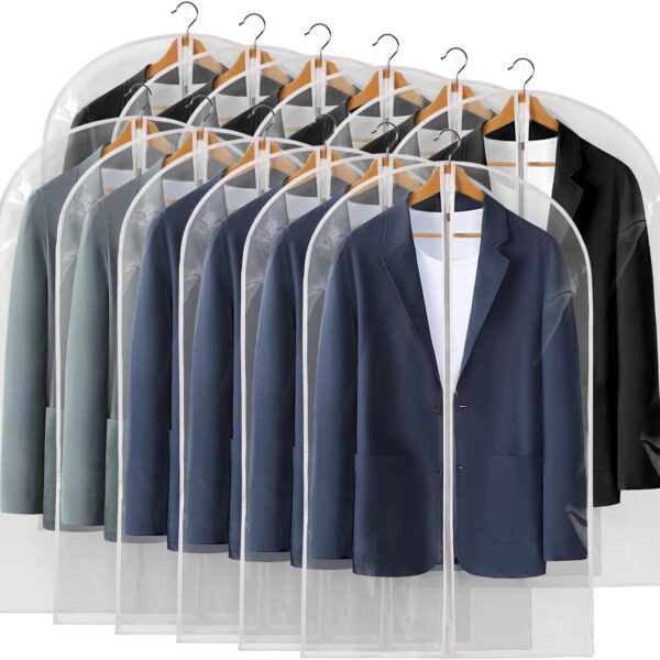 40″ All Clear Garment Bags for Hanging Clothes, 12 Packs Suit Bags for Closet Storage, Plastic Waterproof Suit Cover Bags with Zipper for Coats, Jackets, Shirts (Set of 12)