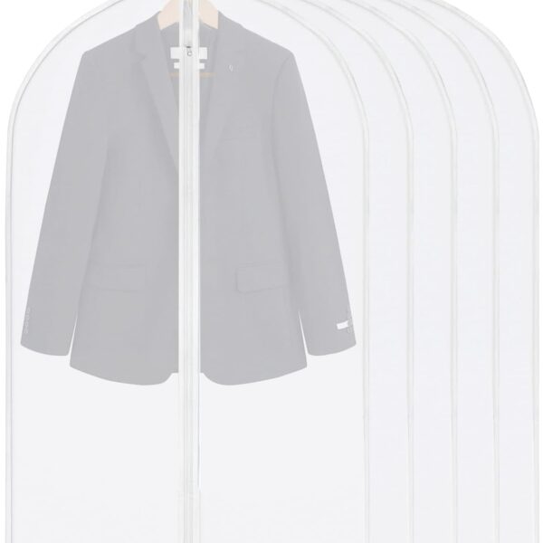5 Pack Garment Bags for Hanging Clothes, 40″ Suit Bags for Closet Storage, Plastic Clothes Covers with Zipper for Dresses