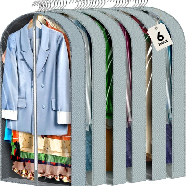 6 pcs 40″ Garment Bags for Hanging Clothes, Clear Suit Bags for Closet Storage Clothing Storage, Garment Bags for Travel Covers with 4″ Gussets for Coats, Jackets, Shirts and Sweater