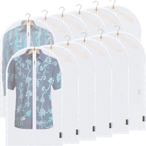 12 Pack Garment Bags for Hanging Clothes – Translucent Suit Bag for Closet Wardrobe Storage Travel – 24″ x 42″
