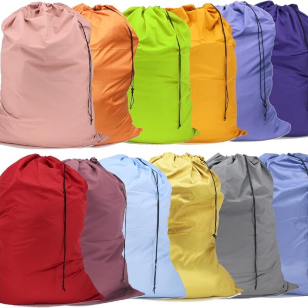 Extra Large Laundry Bag Travel Laundry Bags with Drawstring Closure Fit a Laundry Basket or Hamper for college dorm and apartment dwellers Machine Washable 30″x40″ (Mixed Color 12 Pack)