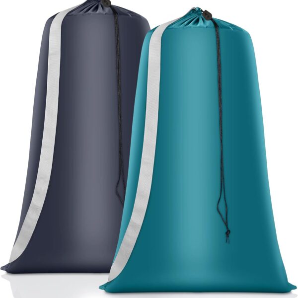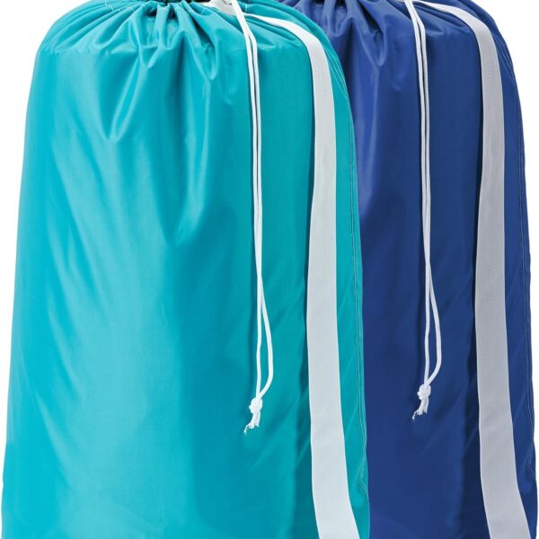 HOMEST 2 Pack XL Nylon Laundry Bag with Strap, Large Dirty Clothes Organizer, Easy Fit a Laundry Hamper or Basket, Can Carry Up to 4 Loads of Laundry, Sky Blue and Blue