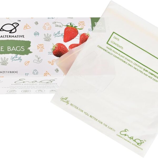 100% Compostable Food Storage Bags [Quart 100 Pack] Eco-Friendly Freezer Bags, Resealable Bags, Heavy-Duty, Reusable, Off-White by Earth’s Natural Alternative