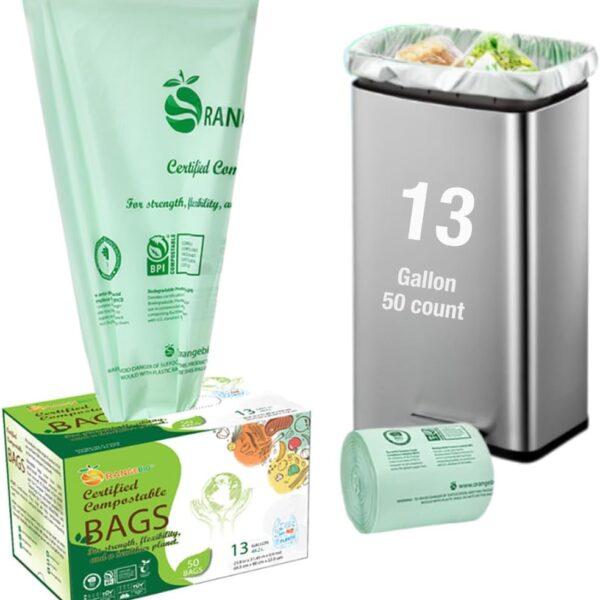 100% Home Compostable Trash Bags 13 Gallon Tall Kitchen, 50 Count, 0.9 Mil, Kitchen Compost Bags, Large Compostable Bags US BPI ASTM D6400 and OK Compost Home Certified