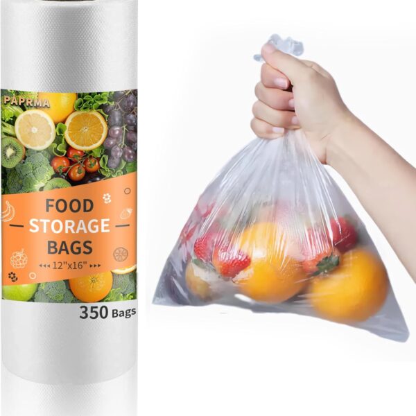 12” x 16” Food Storage Bags Clear Plastic Produce Bag, Disposable Plastic Bags for Food Vegetable 1 Roll, 350pcs on a Roll