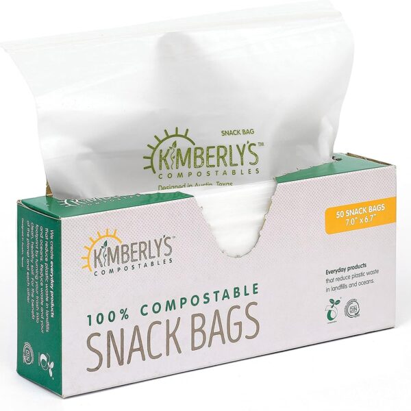 KC’s Compostable Sandwich & Snack Bags – 50 Count, 7×6.7 in Resealable Extra-Thick 50µm Plant-Based Cornstarch Bags – Certified ASTM D6400 & OK Compost HOME – Leakproof, Odorless & Durable