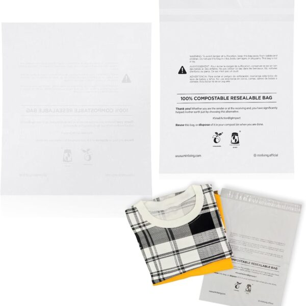 Plant-Based Cello Bags, 85 Count Compostable Storage Bags, Self-Sealing Translucent Frosted Bag for Clothes Snacks Cosmetics, Biodegradable Packaging with Resealable Closure, Medium