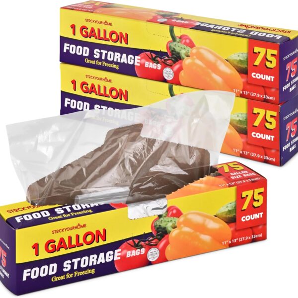 1 Gallon Food Storage Bags with Twist Ties (225 Count) Bulk Freezer Storage Bags Gallon Size for Bread, Vegetables, Fruit, and More, Clear Disposable Twist Tie Storage Bags, Stock Your Home