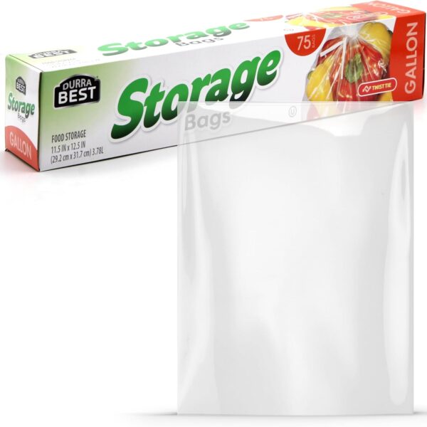 1 Gallon Food Storage Bags with Twist Ties – 75 Count Clear Plastic Baggies for Bread, Snacks, Fruits, Baked Goods – Durable, Leak-Resistant, Food Safe – by DURRA BEST
