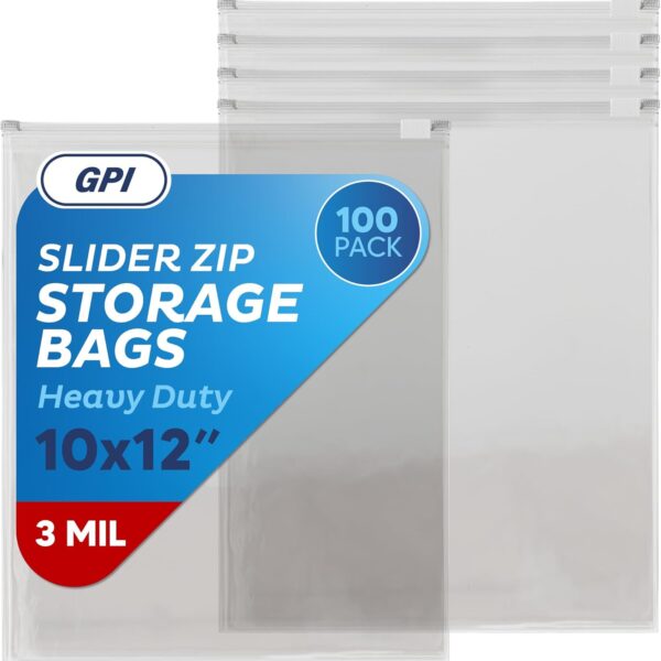 100 Count – Slider Zip 1 Gallon Food Storage Bags, 10″ x 12″ 3 Mil Heavy Duty, Large, Strong & Durable For Freezer Storage. GPI