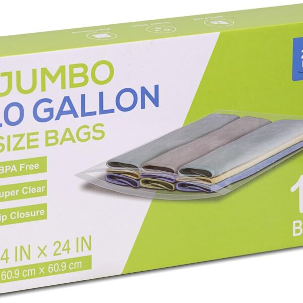 15 Count – 10 Gallon Storage Zipper Bags, 24″ x 24″, Jumbo, 3 Mils, BPA-Free, Seasonal Items, Clothes, Moving, and Other Needs, Heavy Duty