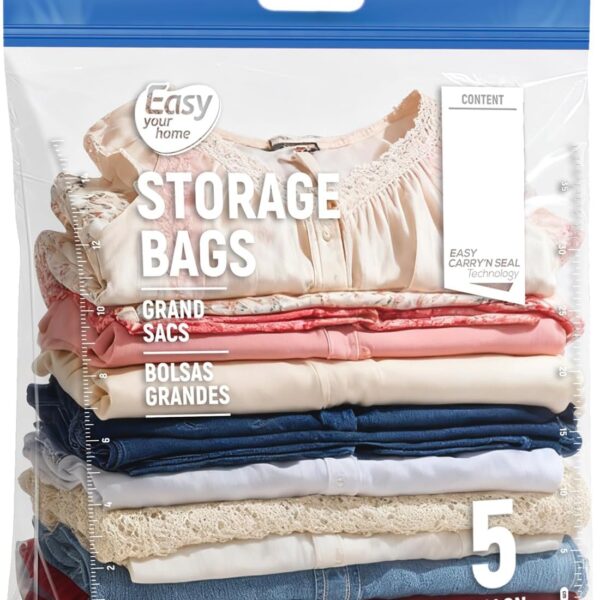 5PCS 5 Gallon Zipper Lock Plastic Bags with Handle and bottom,18″x23″+7″,Extra Large Size Reusable Storage Bag with Double Zip for Clothing,Travel,Moving,Beach,BPA-Free,3-Mil Thick