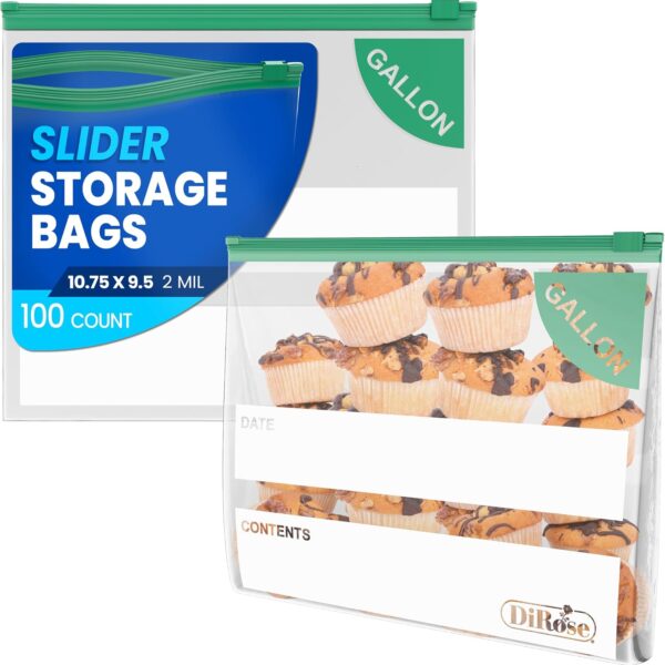 DiRose Gallon Slider Storage Bags, Easy Open Zip, Ideal for Food Storage and Organization, 100 Count