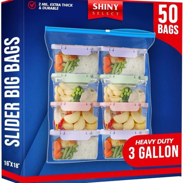 [ Pack of 50 3.5 Gallon Large Food Storage Bags with Reclosable Easy Open Close Slider Closure, 2 Mil Thick, Size 16″x18″, for Food-Meal Prep, Organization & Storage