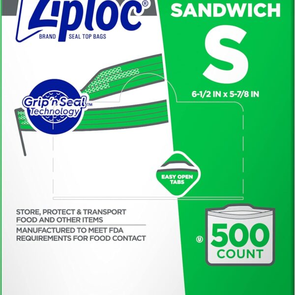 SC Johnson Professional Ziploc Brand Sandwich Bags, Food Storage Ziploc Brand Bags, Easy Open Tabs, Commercial Pack, 500 Count Box, for Professional Use Only