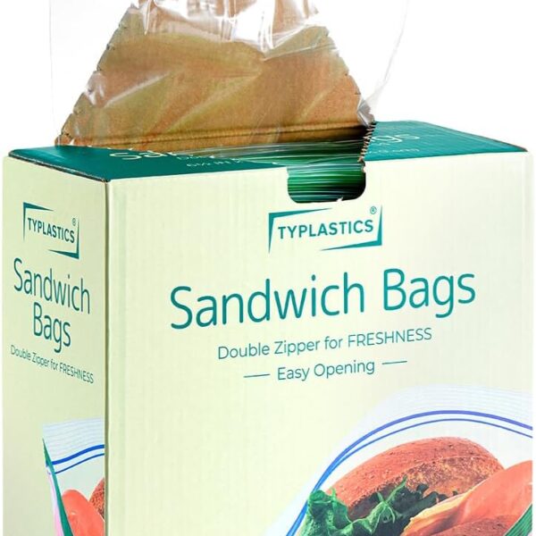 TYPLASTICS Sandwich and Snack Bags, Storage Bags for Food On the Go, Double Zipper for Freshness, Easy Open Design, Reclosable, 360 Count