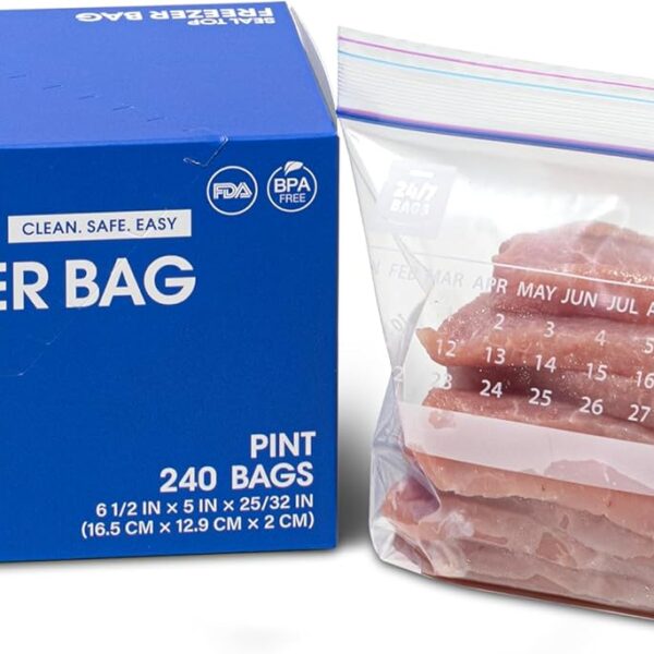 24/7 Bags- Sandwich Freezer Bags, 240 Count with Expandable Bottom and New Calendar Feature