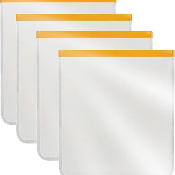 (re) zip Gallon Reusable Storage Bags, BPA-Free, Leakproof, Food-Grade 100% Food-Safe PEVA, for Food Storage and Freezer Use, Holds 16 cups | 128 fl oz, 4-Pack (Clear)