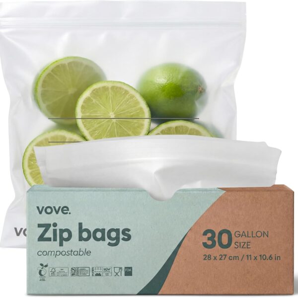 Vove Compostable Gallon Bags 30 Ct – PFAS-Free, BPI Certified, Freezer Safe with Airtight Seal for Meal Prep & Bulk Storage, Plant-Based