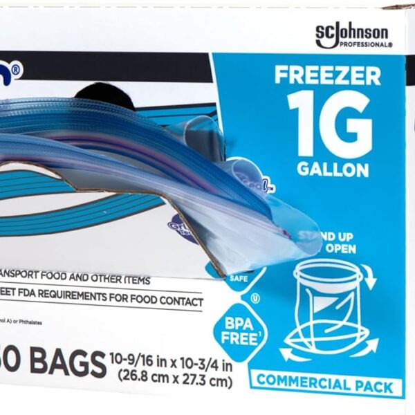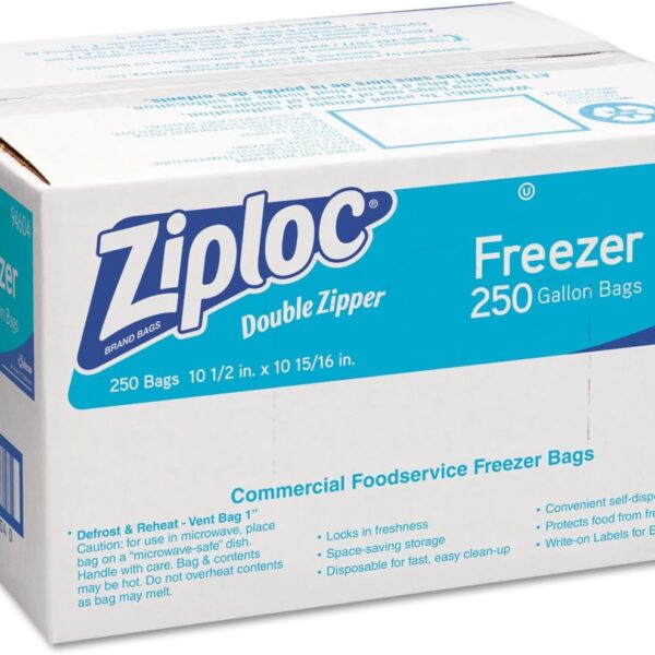 SC Johnson Professional Ziploc Brand Food Storage Freezer Bags, 1 Gallon Freezer Bags, Ziploc Brand Bags, Commercial Pack, 250 Count Box, for Professional Use Only
