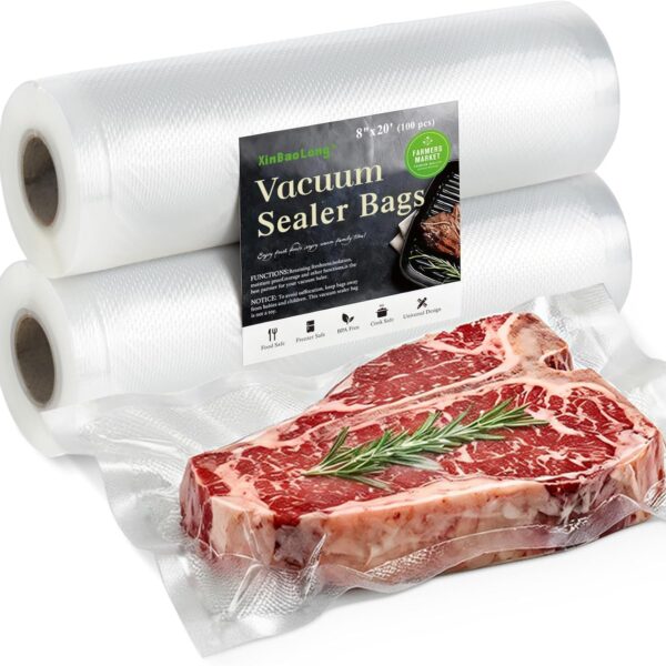 Vacuum Sealer Bags for Food – Seal a Meal Bags Rolls – 8inx20 Rolls 2 Pack – XinBaoLong Commercial Grade Heavy Duty BPA Free Great for Vac Storage