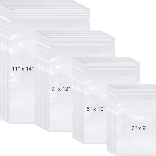 Kosiz 600 Pcs Clear Cellophane Bag Plastic Poly Shirt Bag Bulk Resealable Clothes Packing Self Adhesive Packages for Business Shipping(6” X 9″, 8” X 10″, 9” X 12″, 11” X 14″)