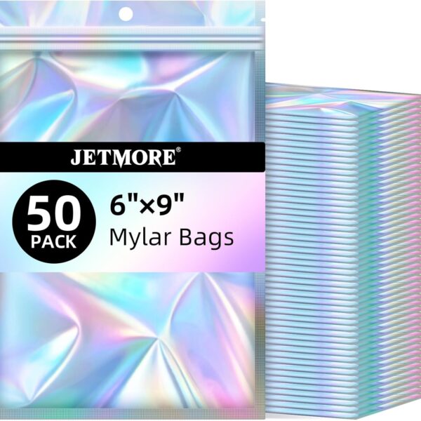 50 PCS Mylar Bags 6x9in, Resealable Holographic Bags, Clear Smell Proof Bag for Gift, Party Favor, Jewelry, Candy, Sealable Freshie Bag for Packaging, Goodie, Treat, Cellophane, Dispensary Bag