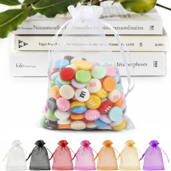 ANZNKU 50 Pack White Organza Bags 5 x 7 in, Small Mesh Gift Bags Bulk Drawstring for Wedding Favors, Gift Wrap Bag for Candy Jewelry Soap Makeup, Cute Goodie Bag Sachet for Party Favor & Easter Gifts