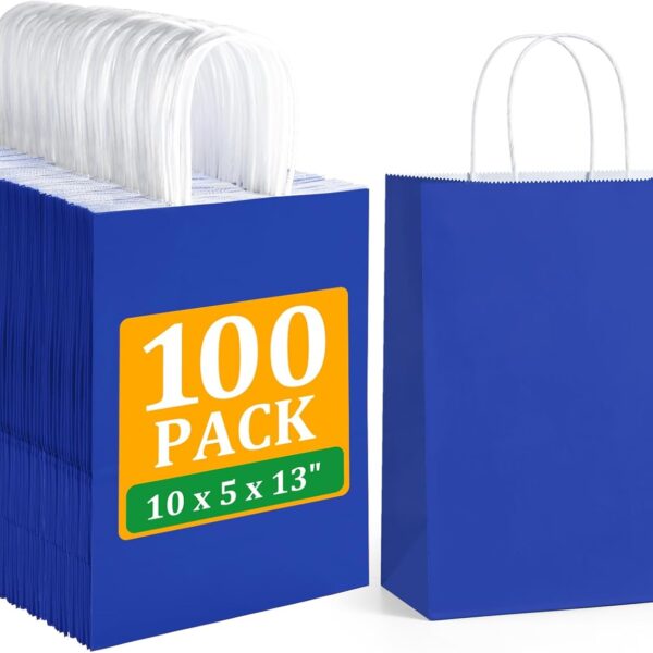 BagDream Royal Blue Gift Bags 10x5x13 Inch 100Pcs Large Kraft Paper Bags Bulk for Shopping, Wedding, Party Favors, Business, Retail, Grocery Paper Sacks with Handles
