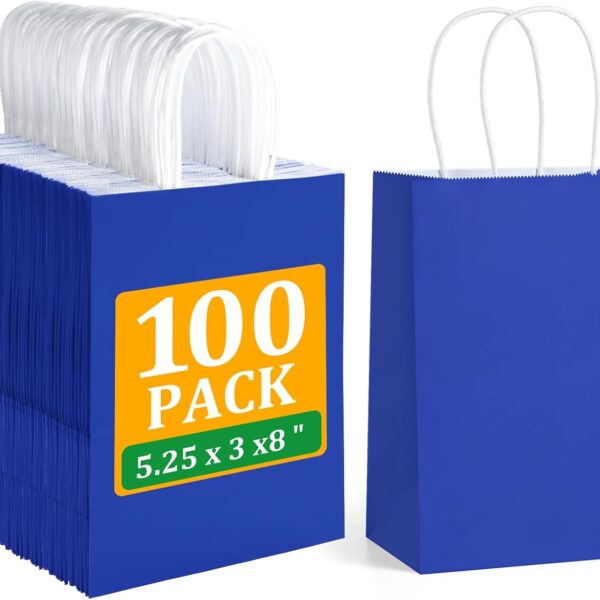 BagDream Royal Blue Gift Bags with Handles Bulk 100Pack 5.25x3x8 Inch Small Kraft Paper Bags for Wedding, Party Favors, Business, Retail, Blue Paper Gift Sacks