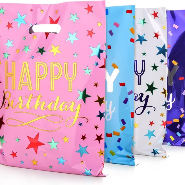 6.7 * 9.8inch Happy Birthday Party Favor Bags 40 PCS, Plastic Goodies Loot Gift Bags Bulk for Kids Baby Girls & Boys Birthday Party Supples (B Style 40 Packs)