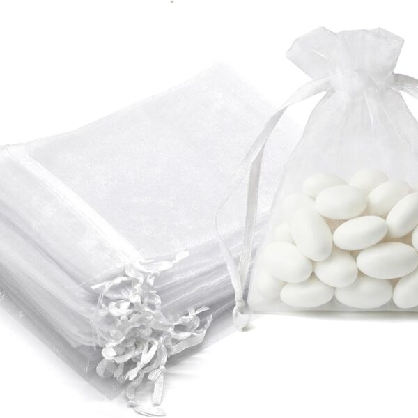 50Pcs White Organza Bags 3×4 Inch, Small Sheer Wedding Party Favor Bags with Drawstring, Mesh Jewelry Gift Bags Christmas Candy Pouches