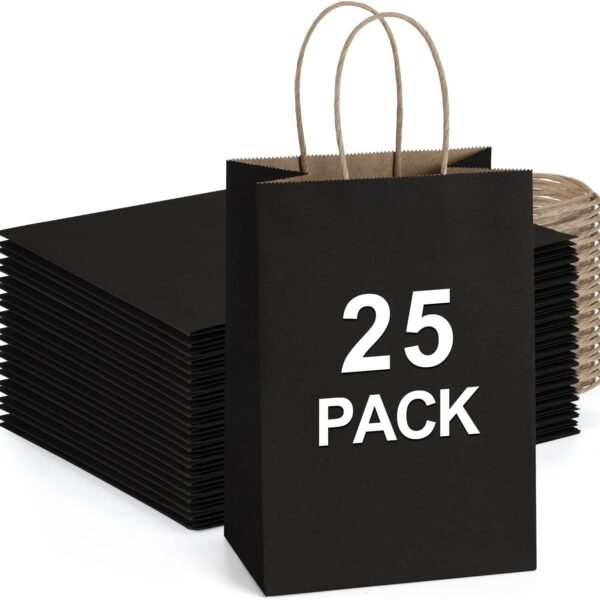 BagDream Kraft Paper Bags 25Pcs 5.25x3x8 Inches Small Paper Gift Bags with Handles Bulk for Party Favor, Retail, Merchandise, Black Gift Sacks