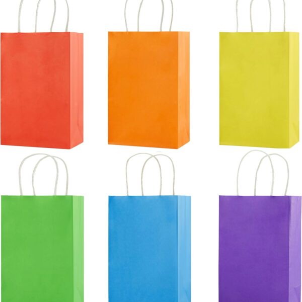 qiqee 24Pcs Small Gift Paper Bag with Handles Bulk – 8.3″x6″x3. 15″ Rainbow Party Bags – Mulit Color
