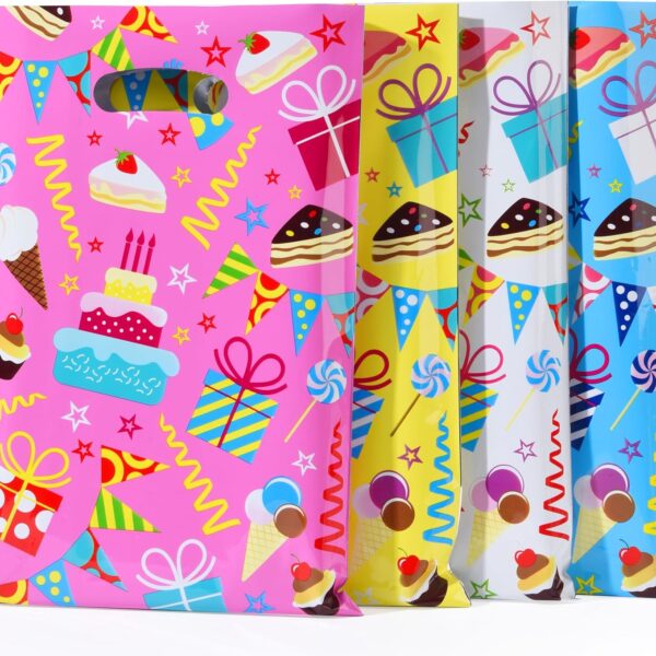SUNCOLOR Birthday Party Favor Bags, 32 Pack Goodie Bags with Handles, 9.8 x6.7 inches, Pink Blue Yellow White Gift Bags for Kids Parties, Celebrations