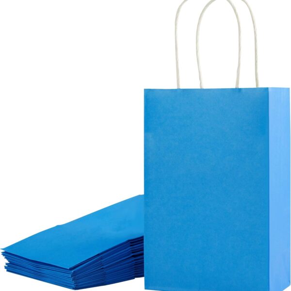 SUNCOLOR 24-Pack Blue Gift Bags with Handles – 8″ Goodie Bags for Party Favor Bags, Baby Showers, Birthdays & Special Occasions (Blue)