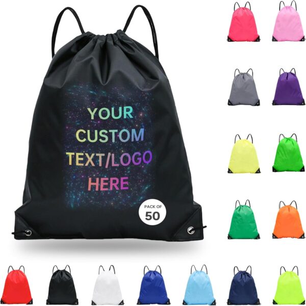 pack of 50 Custom Bags With Your Logo,Drawstring Backpacks Bulk String Bag,Great for Travelling, Gym and for Everyday Use (Custom black)