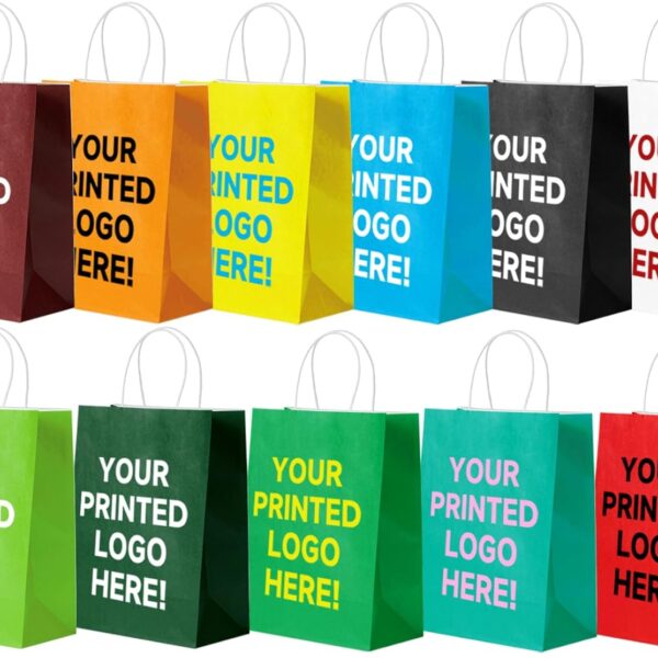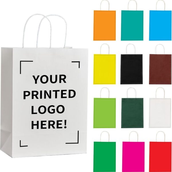 YEEHAW Custom Color Printed Medium Paper Bags 50 Count, 8×4.5×10.8 Inch Personalized Kraft Paper Bags with Personal Logo, Ideal for Brand Promotion in Retailing, Gift Wrapping and Shopping