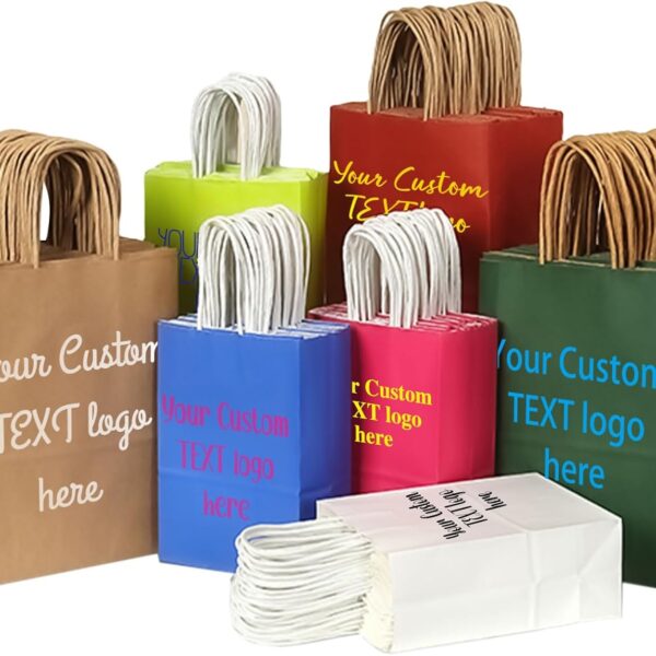 RACETOP 50 PCS Custom Printed Kraft Paper Bags, Personalize Paper Bags for Small Business, Personalized Gift Bag with Medium Size, Shopping Bag, Birthday Gift Bag, Party Bag