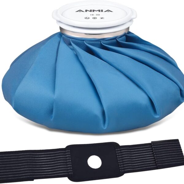 ANMIA Ice Pack Bags with Wrap for Injuries Reusable, Cold Pack Water Bag Hot Bag for Pain Relief, Leak-Proof Elastic Ice Bag, Size 9”