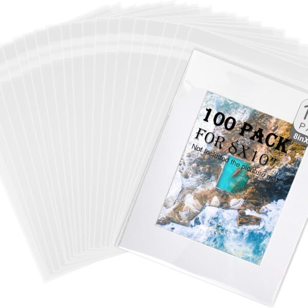 100 Pack Acid-Free Crystal Clear Sleeves Storage Bags for 8×10 Art Prints/Framing Mat Mattes/Photos/Pictures, OPP Sleeves Storage Bags(Bag Size: 8 4/15″/21cmX 11″/28cm)