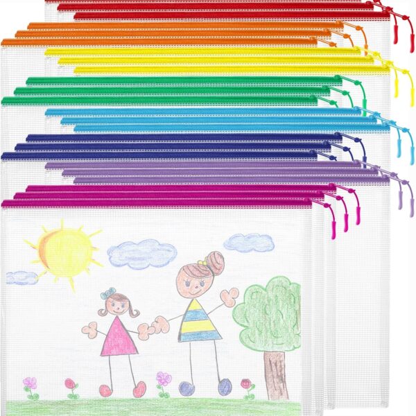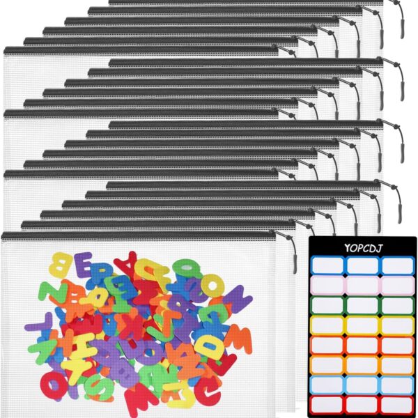 24pcs Mesh Zipper Pouch Bags Puzzle Storage Bags, A4 13×9 Inches Large Reusable Zipper Pouches for Classroom Organizing Board Game Home Organization