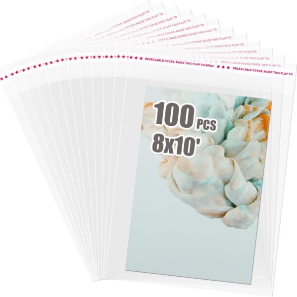 Egofine Self Sealing Cellophane Bags 100 PCS Clear Resealable Sleeves Bags for 8×10 Photo Mats, Bag Size: 8.26×10.3 inches for 8×10 Mats