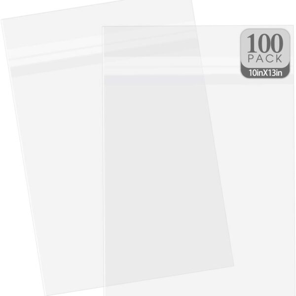 Golden State Art, 100 Pack 10-7/16″ x 13-1/4″ Acid-Free Clear Sleeves Storage Bags – Fits 10X13 Prints, Photos, Clothing & T Shirts Self Seal